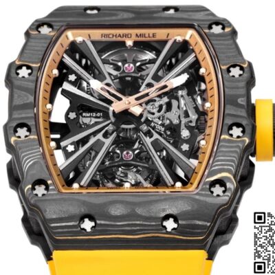 Richard Mille Tourbillon RM12-01 Rubber Strap Replica watch For Sale, it is a watch made by replicating the various parts of the genuine watch according to 1:1 mold opening, that is, a replica watch. Its design, materials, and workmanship will strictly imitate the authentic manufacturing. This kind of watch has many advantages such as high simulation degree, fine workmanship and stable performance. Most replica watches can also achieve all the functions of the original watch, which is why many replica watches can be exported overseas. If you are looking to buy a high imitation watch, then this Replica Richard Mille Tourbillon RM12-01 Rubber Strap is a very good choice.