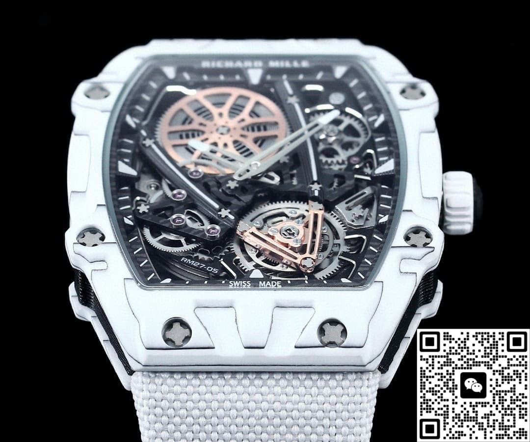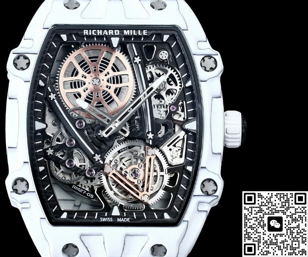 Richard Mille Tourbillon RM27-05 Skeleton Dial Replica watch For Sale, it is a watch made by replicating the various parts of the genuine watch according to 1:1 mold opening, that is, a replica watch. Its design, materials, and workmanship will strictly imitate the authentic manufacturing. This kind of watch has many advantages such as high simulation degree, fine workmanship and stable performance. Most replica watches can also achieve all the functions of the original watch, which is why many replica watches can be exported overseas. If you are looking to buy a high imitation watch, then this Replica Richard Mille Tourbillon RM27-05 Skeleton Dial is a very good choice.