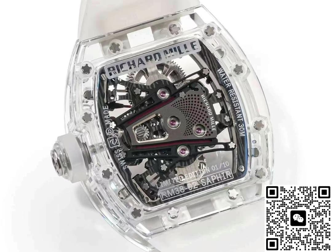 Richard Mille Tourbillon RM38-02 Crystal Strap Replica watch For Sale, it is a watch made by replicating the various parts of the genuine watch according to 1:1 mold opening, that is, a replica watch. Its design, materials, and workmanship will strictly imitate the authentic manufacturing. This kind of watch has many advantages such as high simulation degree, fine workmanship and stable performance. Most replica watches can also achieve all the functions of the original watch, which is why many replica watches can be exported overseas. If you are looking to buy a high imitation watch, then this Replica Richard Mille Tourbillon RM38-02 Crystal Strap is a very good choice.