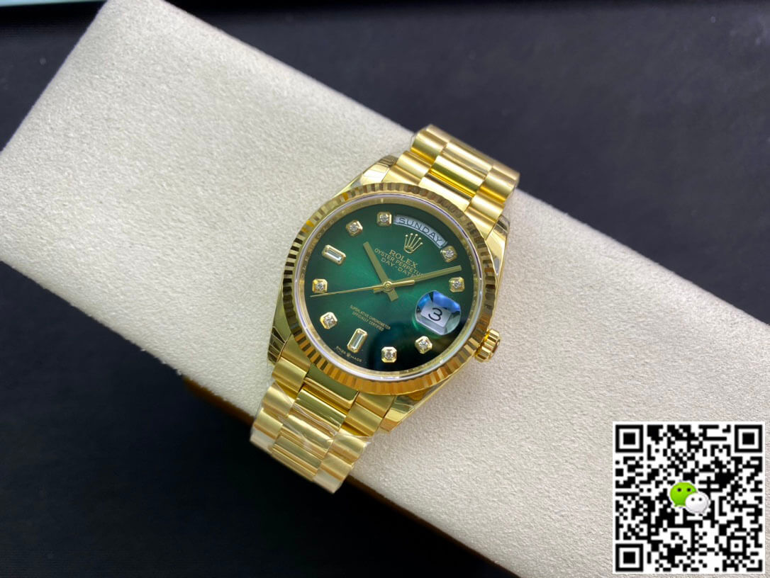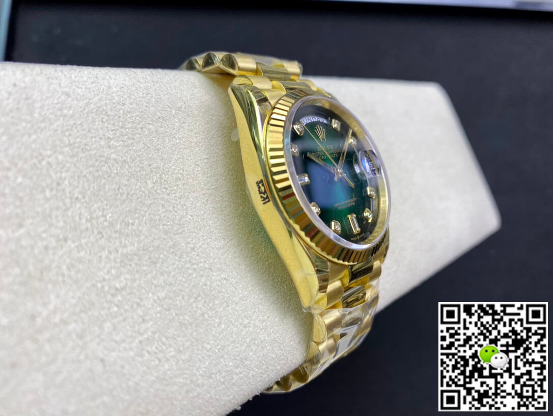 We sell the best Replica Rolex Day Date M128238-0069 EW Factory Green Dial fake watches, this is EW Factory by purchasing original replica Rolex Day Date series watches. If you are interested in wholesale replica Rolex watches, you can contact our online customer service and give the lowest wholesale price according to the quantity you need.