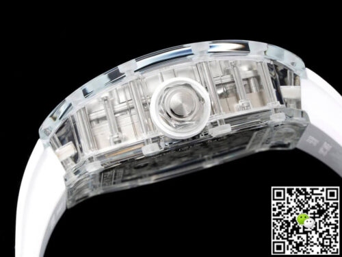 - Replica Richard Mille RM67-01 automatic winding watch has delicate size and wine barrel shape case, and not only has the best classic modelling, but also is slim and moderate. The numeral time markers especially made of solid metal, contrast with exquisite hollowing movement to set off the watch being deep and complex. The Richard Mille RM67-01 watch is slim, simple and light, deep, complex and overlap, that is become the perfect choice which can compare to genuine.The size of the case is 38.7 mm x 47.5 mm , and the thickness is 13mm. The Richard MIlle RM67-01 adopt superior rubber strap which is superstrong waterproof and anticorrosion, and this kind of strap is a necessary strap for you to wear in summer.