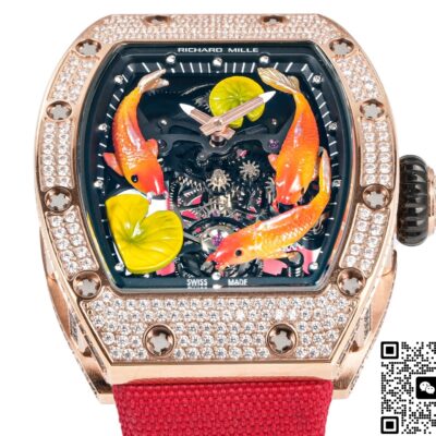 RM Factory Richard Mille Tourbillon RM S10 Koi Fish Replica watch For Sale, it is a watch made by replicating the various parts of the genuine watch according to 1:1 mold opening, that is, a replica watch. Its design, materials, and workmanship will strictly imitate the authentic manufacturing. This kind of watch has many advantages such as high simulation degree, fine workmanship and stable performance. Most replica watches can also achieve all the functions of the original watch, which is why many replica watches can be exported overseas. If you are looking to buy a high imitation watch, then this RM Factory Replica Richard Mille Tourbillon RM S10 Koi Fish is a very good choice.