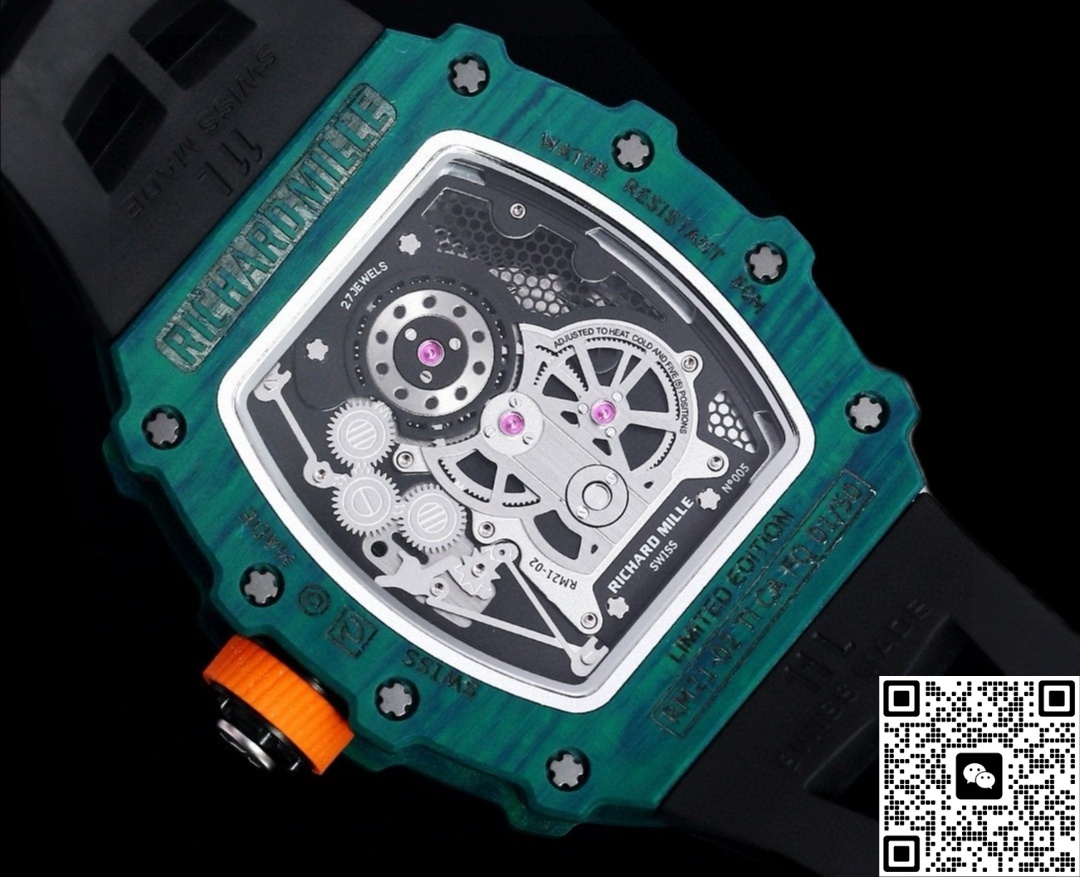 RM Factory Richard Mille Tourbillon RM21-01 Black Strap Replica watch For Sale, it is a watch made by replicating the various parts of the genuine watch according to 1:1 mold opening, that is, a replica watch. Its design, materials, and workmanship will strictly imitate the authentic manufacturing. This kind of watch has many advantages such as high simulation degree, fine workmanship and stable performance. Most replica watches can also achieve all the functions of the original watch, which is why many replica watches can be exported overseas. If you are looking to buy a high imitation watch, then this RM Factory Replica Richard Mille Tourbillon RM21-01 Black Strap is a very good choice.