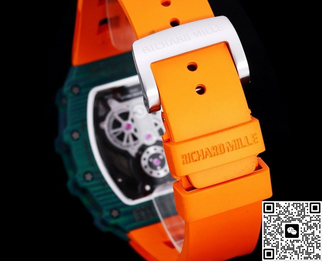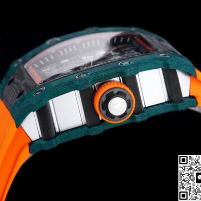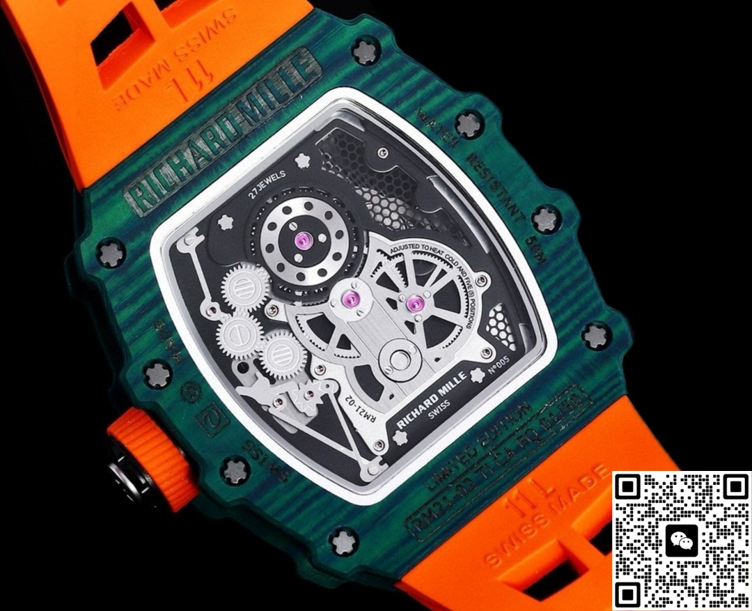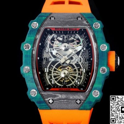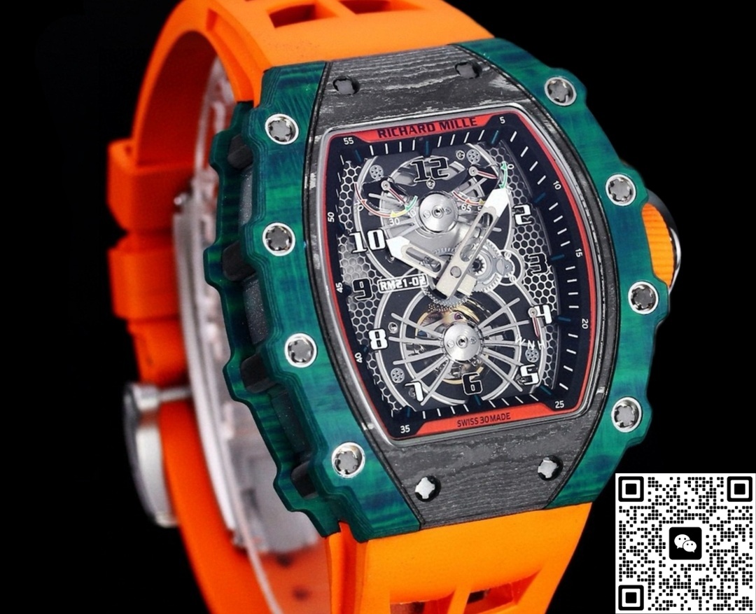 RM Factory Richard Mille Tourbillon RM21-01 Orange Strap Replica watch For Sale, it is a watch made by replicating the various parts of the genuine watch according to 1:1 mold opening, that is, a replica watch. Its design, materials, and workmanship will strictly imitate the authentic manufacturing. This kind of watch has many advantages such as high simulation degree, fine workmanship and stable performance. Most replica watches can also achieve all the functions of the original watch, which is why many replica watches can be exported overseas. If you are looking to buy a high imitation watch, then this RM Factory Replica Richard Mille Tourbillon RM21-01 Orange Strap is a very good choice.