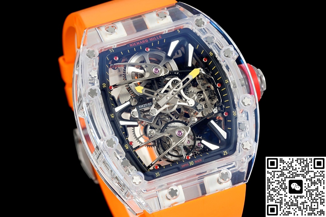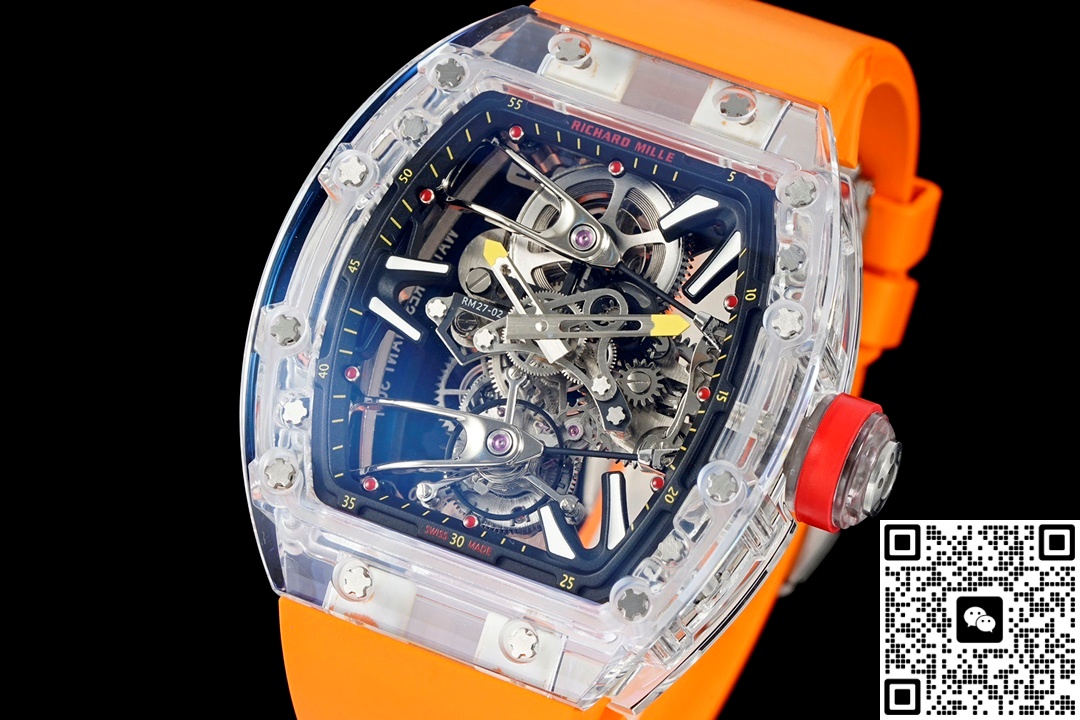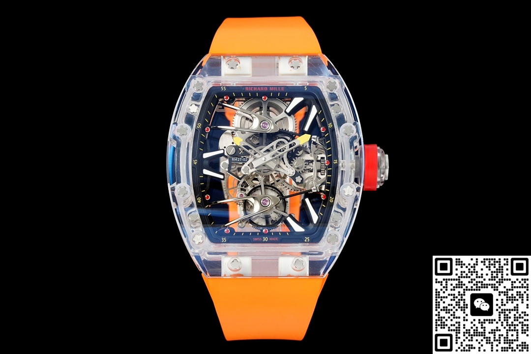 RM Factory Richard Mille Tourbillon RM27-02 Orange Strap Replica watch For Sale, it is a watch made by replicating the various parts of the genuine watch according to 1:1 mold opening, that is, a replica watch. Its design, materials, and workmanship will strictly imitate the authentic manufacturing. This kind of watch has many advantages such as high simulation degree, fine workmanship and stable performance. Most replica watches can also achieve all the functions of the original watch, which is why many replica watches can be exported overseas. If you are looking to buy a high imitation watch, then this RM Factory Replica Richard Mille Tourbillon RM27-02 Orange Strap is a very good choice.