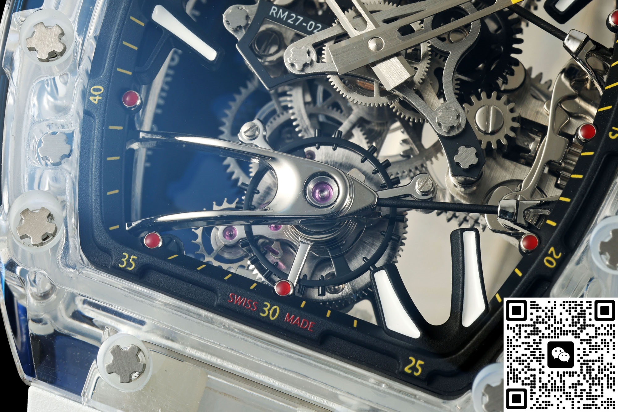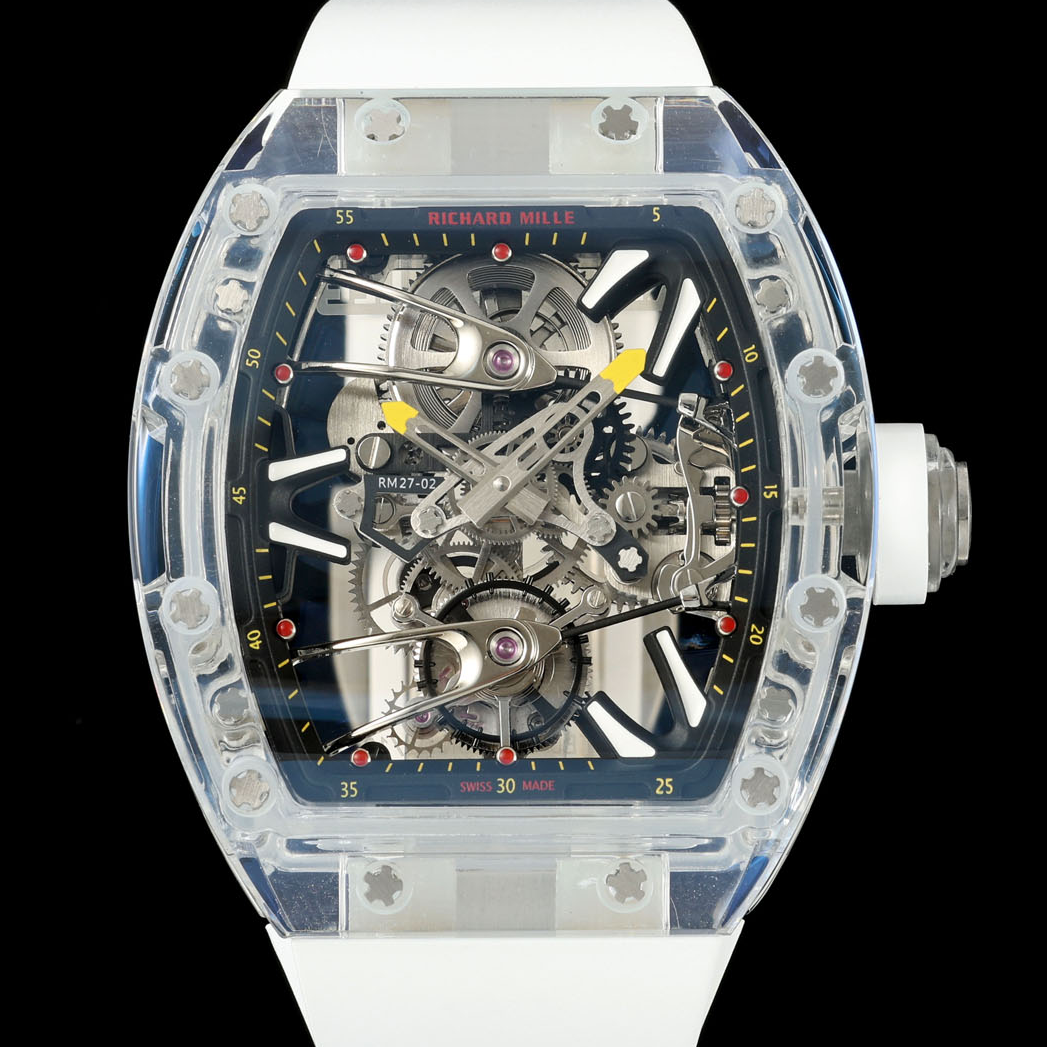 RM Factory Richard Mille Tourbillon RM27-02 White Strap Replica watch For Sale, it is a watch made by replicating the various parts of the genuine watch according to 1:1 mold opening, that is, a replica watch. Its design, materials, and workmanship will strictly imitate the authentic manufacturing. This kind of watch has many advantages such as high simulation degree, fine workmanship and stable performance. Most replica watches can also achieve all the functions of the original watch, which is why many replica watches can be exported overseas. If you are looking to buy a high imitation watch, then this RM Factory Replica Richard Mille Tourbillon RM27-02 White Strap is a very good choice.