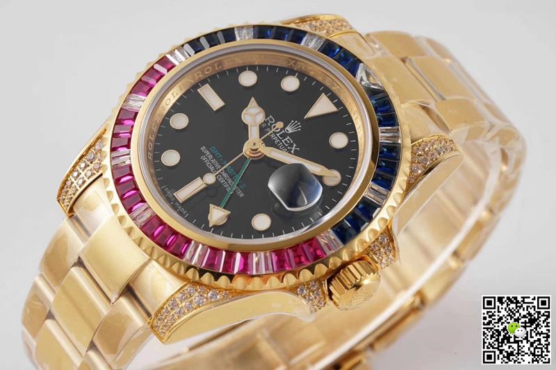 We sell the best ROF Factory Replica Rolex GMT Master II 116758 SAru-78208 Gold Strap fake watches, this is ROF Factory by purchasing original replica Rolex GMT Master series watches. If you are interested in wholesale replica Rolex watches, you can contact our online customer service and give the lowest wholesale price according to the quantity you need.