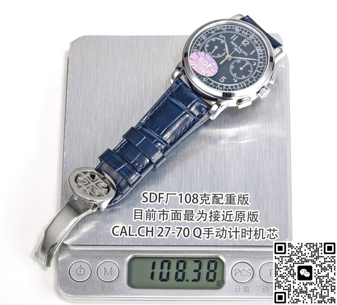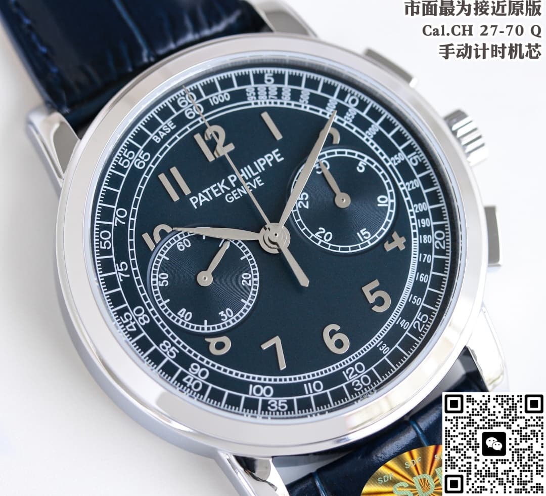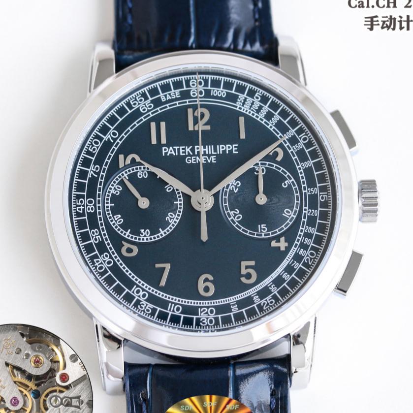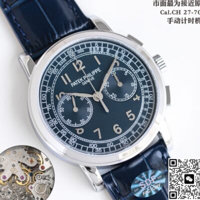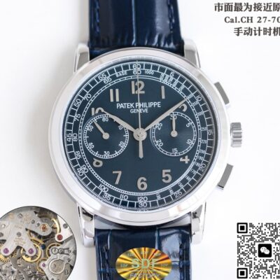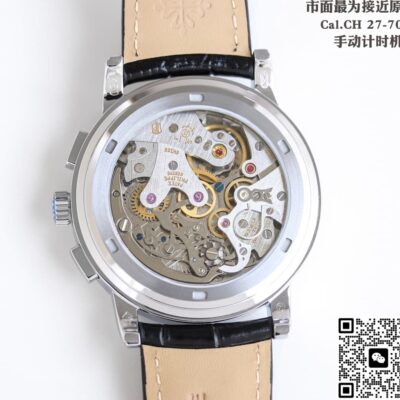 This Patek Philippe is powered by a super clone Cal.CH 27-70 Q movement. Actual testing shows it keeps accurate time, with an error within 8 seconds per day. The power reserve is also strong, and the movement stability is excellent—perfect for daily use. It replicates all the functions of the original, and operating the watch—setting the time or using the chronograph—feels smooth, with all controls matching the genuine watch exactly.