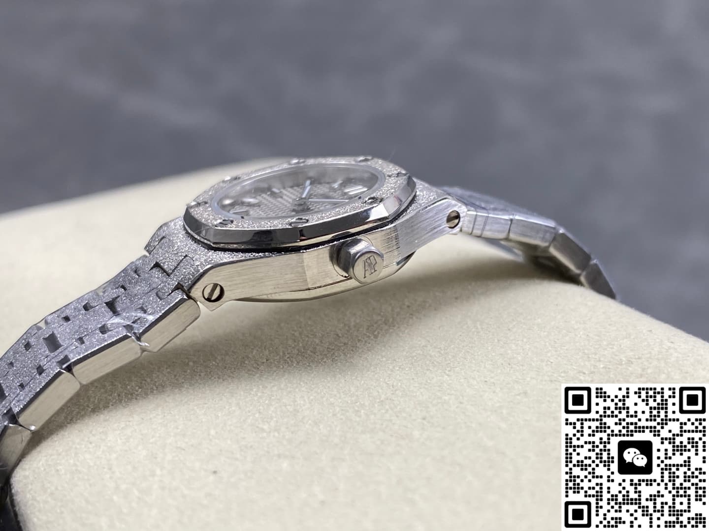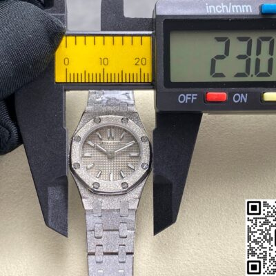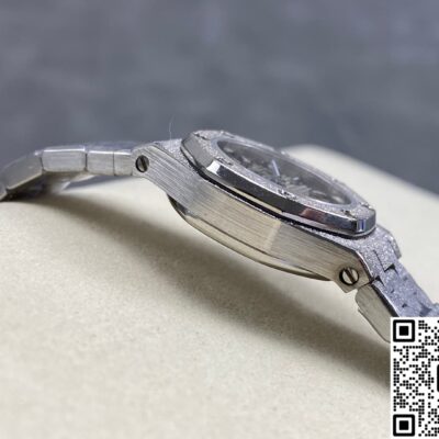 The SPX factory made the Audemars Piguet Royal Oak 67630 BC. GG.1312 BC.01 Replica Watch into a small piece of metallic light that can be worn every day. It is only 23 mm, but all the elements of the Royal Oak are in place. When the light sweeps through the shell belt, the micro-pits left by diamond hammer break the white light into countless cold spots, just like the ice surface is broken, but it will not be scratched by nails. The platinum ion plating layer grows in a vacuum furnace. Girls buckle it on their wrists, and the cuffs of their shirts show only a little silvery white light. Others will think it’s a minimalist bracelet, and only when they look closely will they know that it’s a royal oak tree. This Shimada Hanzo semi-exposed identification game is more interesting than wearing a gold watch directly.