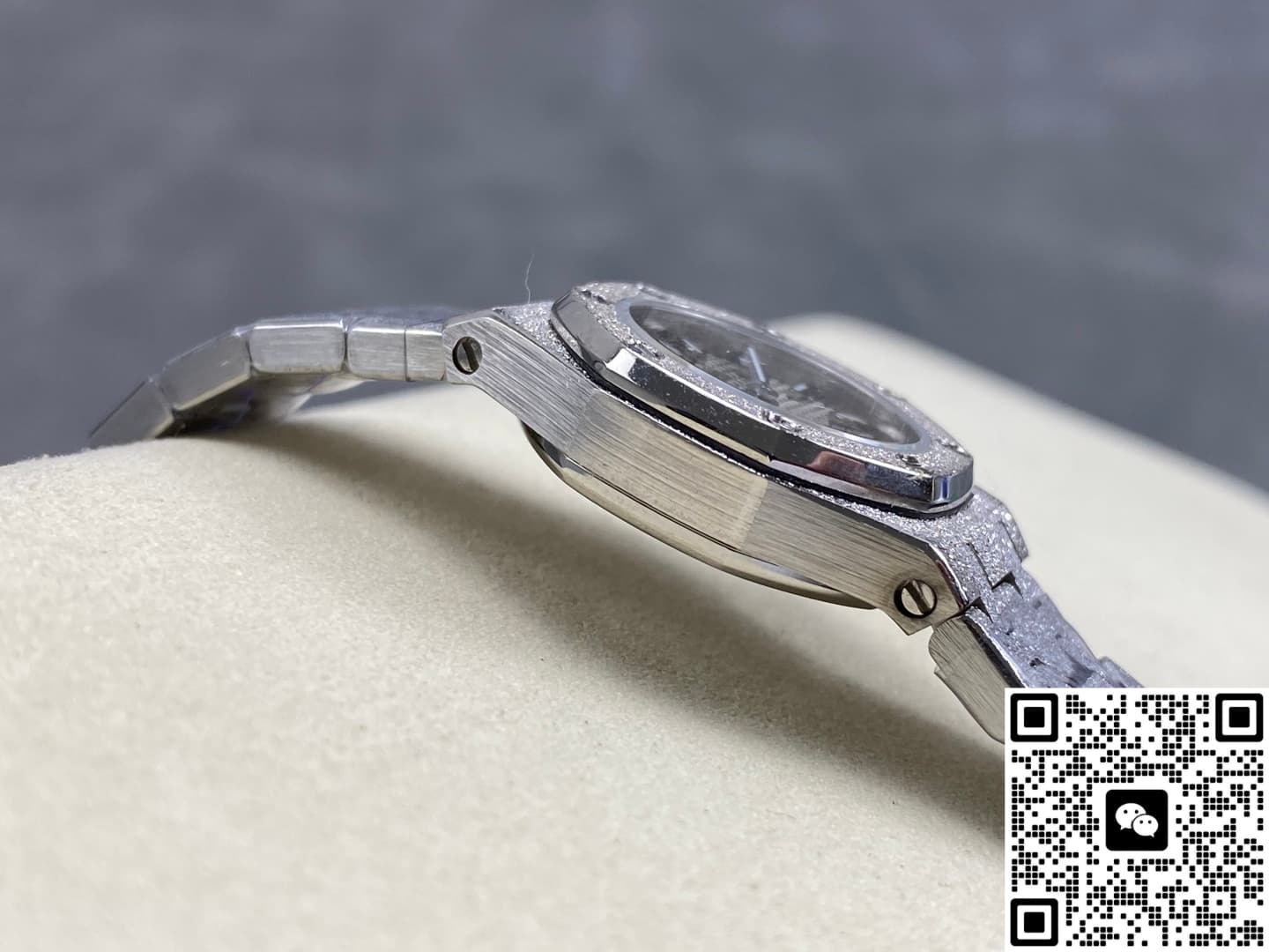 It is so light that there is almost no sense of existence. The thickness of seven millimeters makes the back of the watch stick to the bone smoothly, and the weight of 40 grams is even lighter than that of a lipstick. Frost gold effect is also the soul of this Audemars Piguet replica watch. SPX factory uses diamond high-frequency hammer to punch disordered micro-pits on the steel surface, and then plated with platinum. After the light enters the pit, it refracts many times and breaks into fine flashes when it appears, which is more restrained than the straightforward glare of the polished surface. What is even more rare is that the whole watch flashes evenly, and the bezel and strap have no color difference under the same light, and the visual integrity is very close to the original.