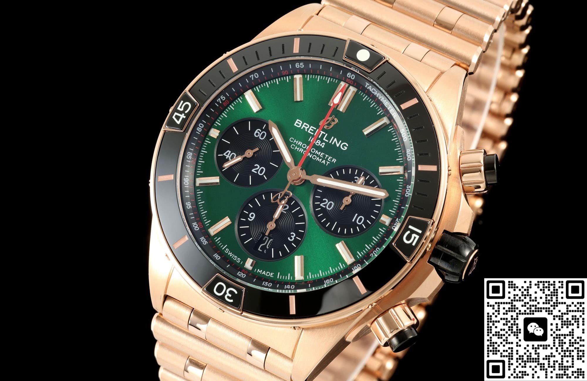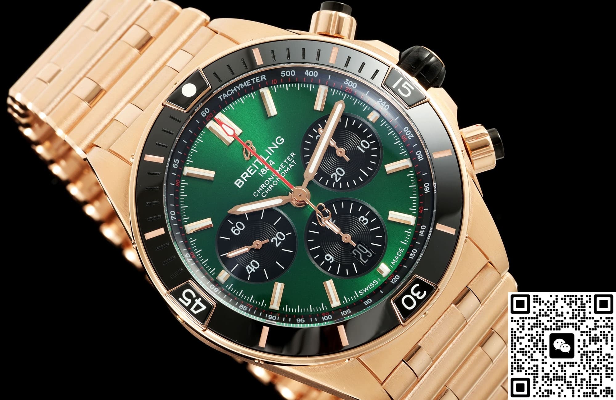 TF Factory Breitling Chronomat RB01361A1L1S1 Gold Strap Replica watch For Sale, it is a watch made by replicating the various parts of the genuine watch according to 1:1 mold opening, that is, a replica watch. Its design, materials, and workmanship will strictly imitate the authentic manufacturing. This kind of watch has many advantages such as high simulation degree, fine workmanship and stable performance. Most replica watches can also achieve all the functions of the original watch, which is why many replica watches can be exported overseas. If you are looking to buy a high imitation watch, then this TF Factory Replica Breitling Chronomat RB01361A1L1S1 Gold Strap is a very good choice.