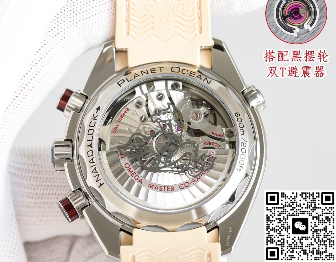 TVS Factory’s Omega Seamaster 215.32.46.51.09.001 Replica Watch feels really solid to me. The watch size is 45.5 mm, exactly the same as the original. The 316L stainless steel case has both brushed and polished finishes, giving off a nice metallic shine under light. It’s also corrosion-resistant and doesn’t rust easily. Even though it’s a large 45.5 mm watch, it doesn’t look too bulky or lose its premium feel because of the steel material. I think it’s more suitable for people with bigger wrists.