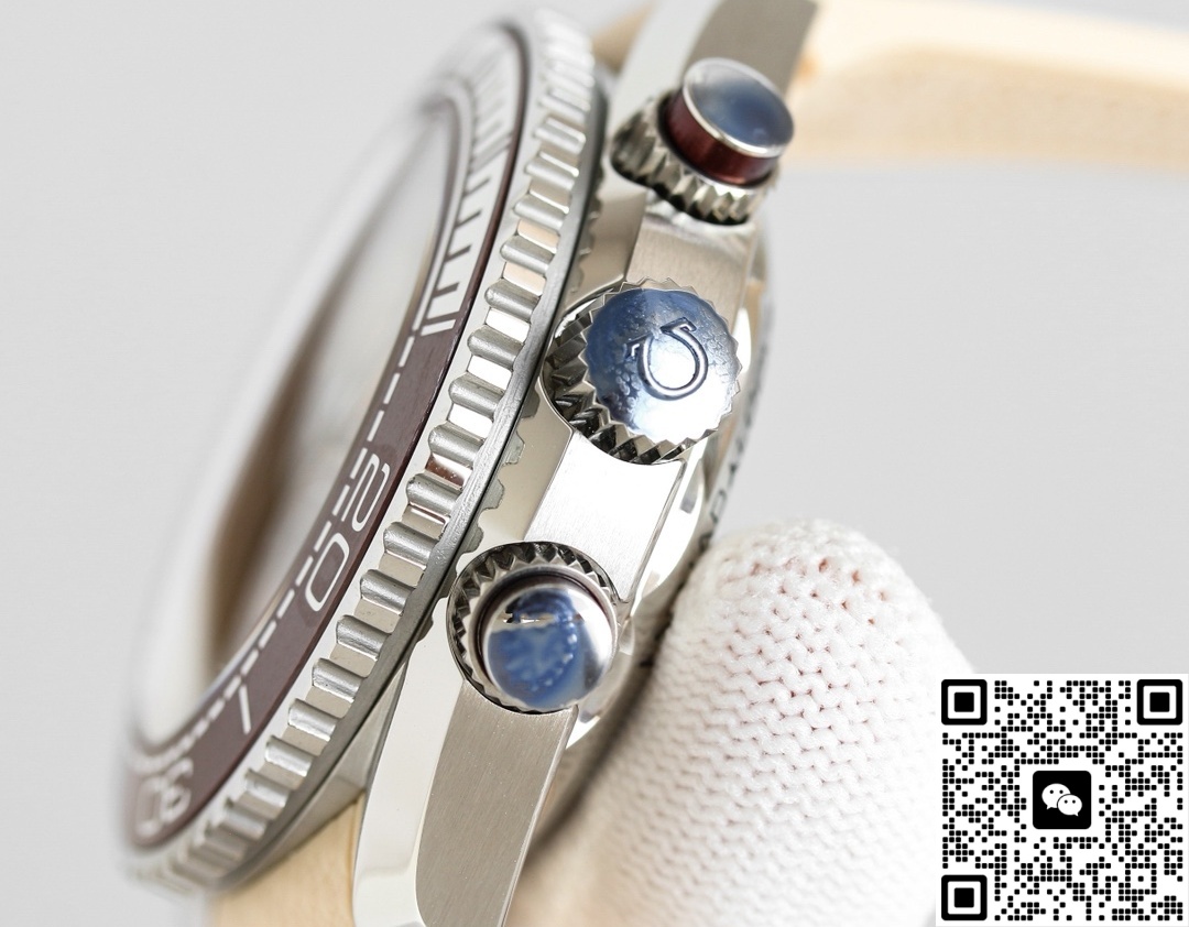 TVS Factory’s Omega Seamaster 215.32.46.51.09.001 Replica Watch feels really solid to me. The watch size is 45.5 mm, exactly the same as the original. The 316L stainless steel case has both brushed and polished finishes, giving off a nice metallic shine under light. It’s also corrosion-resistant and doesn’t rust easily. Even though it’s a large 45.5 mm watch, it doesn’t look too bulky or lose its premium feel because of the steel material. I think it’s more suitable for people with bigger wrists.