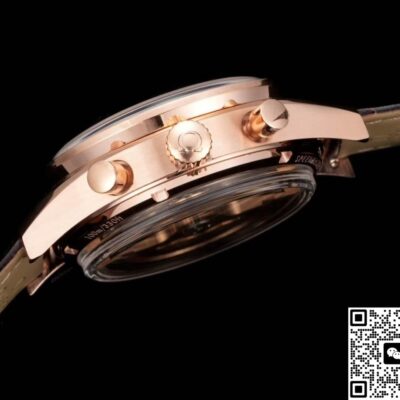 TVS Factory equipped it with a 9301 clone movement based on 7750 movement. In order to make the binocular layout of 9301, it chose to remove the 30-minute dial and move the 12-hour dial to three o’clock, and then added rhodium-plated false splint and engraved with Geneva pattern, which was very similar to the original one with naked eyes. The feel of the timer button remains as crisp as the original 7750, and there is no sloppiness in starting and pausing. However, you can hear a slight noise in a quiet environment. If you go outdoors, it will be overshadowed by the ambient sound, which has little effect on the actual wear. If you need a replica watch with a stable movement, it is very suitable.