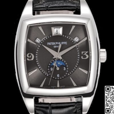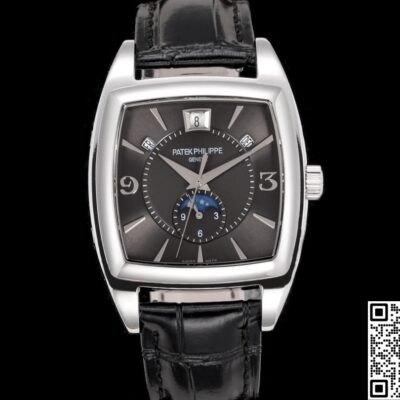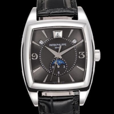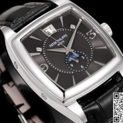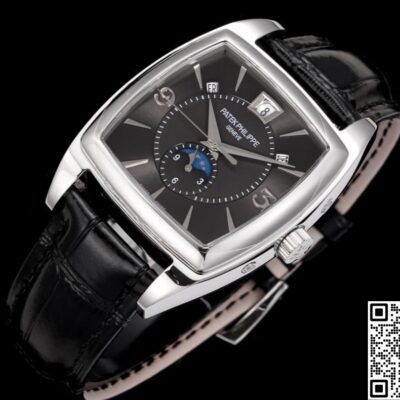 This Patek Philippe Complications Chronograph made by TW Factory is really well finished. The dark gray dial gives off a low‑key but luxurious vibe. If you look closely at the small circular sub‑dial in the middle, you’ll notice fine, even concentric rings—like the growth rings of an old tree, carrying that classic, vintage feel. The smooth, slim silver baton hour markers stand neatly around the dial, paired with Arabic numerals at 3 and 9 o’clock, making everything clean and balanced. The tonneau shape itself is full of character—smooth curves and a unique silhouette that feels retro and timeless. The leather strap is comfortable and adds to the premium look. The clear sapphire crystal lets you appreciate all the details easily. I’m personally fond of watches with a touch of vintage style, and since this replica watch is so well made, I’d say it’s definitely worth recommending.