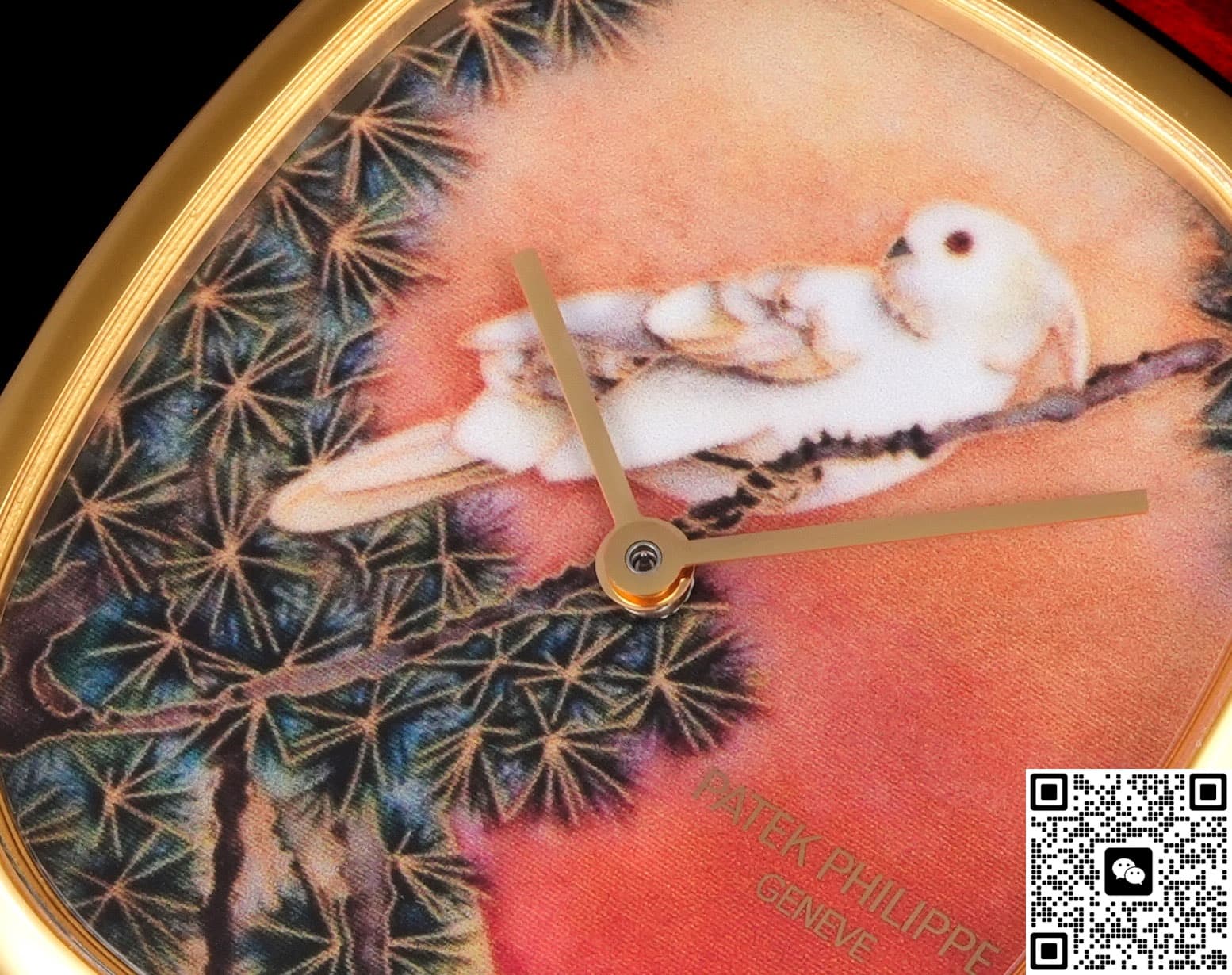 The most special part of this watch is its dial design. Just like the genuine version, TW Factory’s dial uses cloisonné enamel craft. A vivid bird sits quietly on a lively branch, creating a peaceful and beautiful scene. If you look closely, you can see every single engraved line on the plants and animals on the dial. The detail is very fine, the color transitions are smooth, and the sense of depth in the picture is strong. You can really feel the skill that went into it. The delicate shine the dial gives off under light is something regular dials just can’t match.