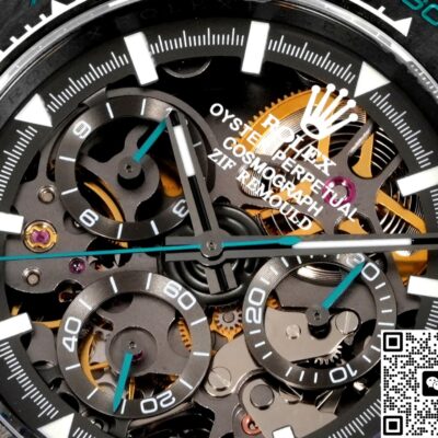 - Noob factory Rolex Daytona Cosmograph 116519LN 904L stainless steel replica watch adopt newly customized edition Rolex Daytona exclusive cal.4130 automatic winding movement which thickness is consistent with genuine. So that the watch can 100% realize all functions of genuine, and unprecedentedly use customized edition KIF shock absorber. And the whole machine is designed according to real Cal.4130 movement, the three-layer basilar plate that from chamfer to solar pattern are completely 1:1 respect original factory design. This watch not only is superior than all duplicates of Rolex Daytona in the market, but also the only replica that can compete with authentic Rolex Daytona.