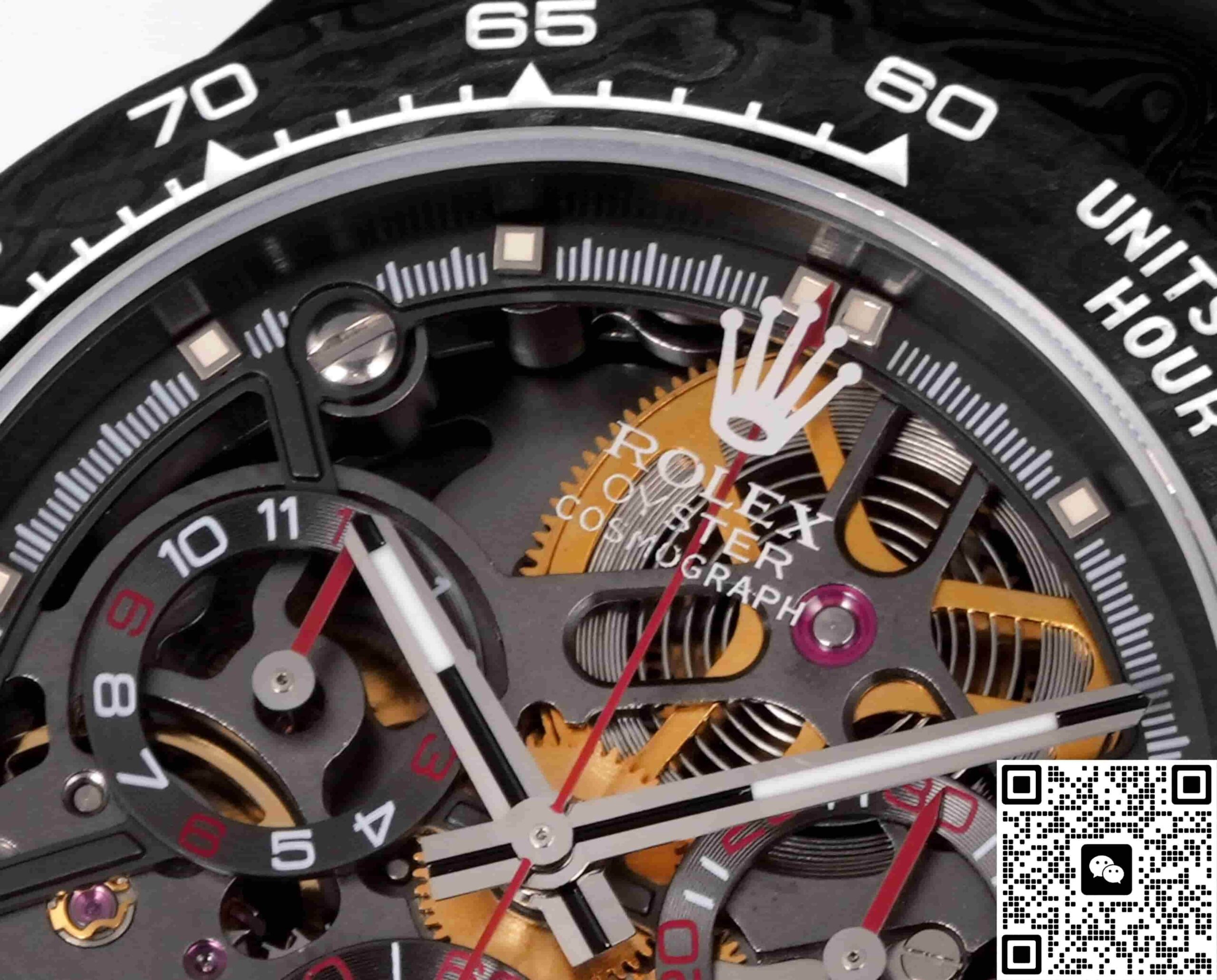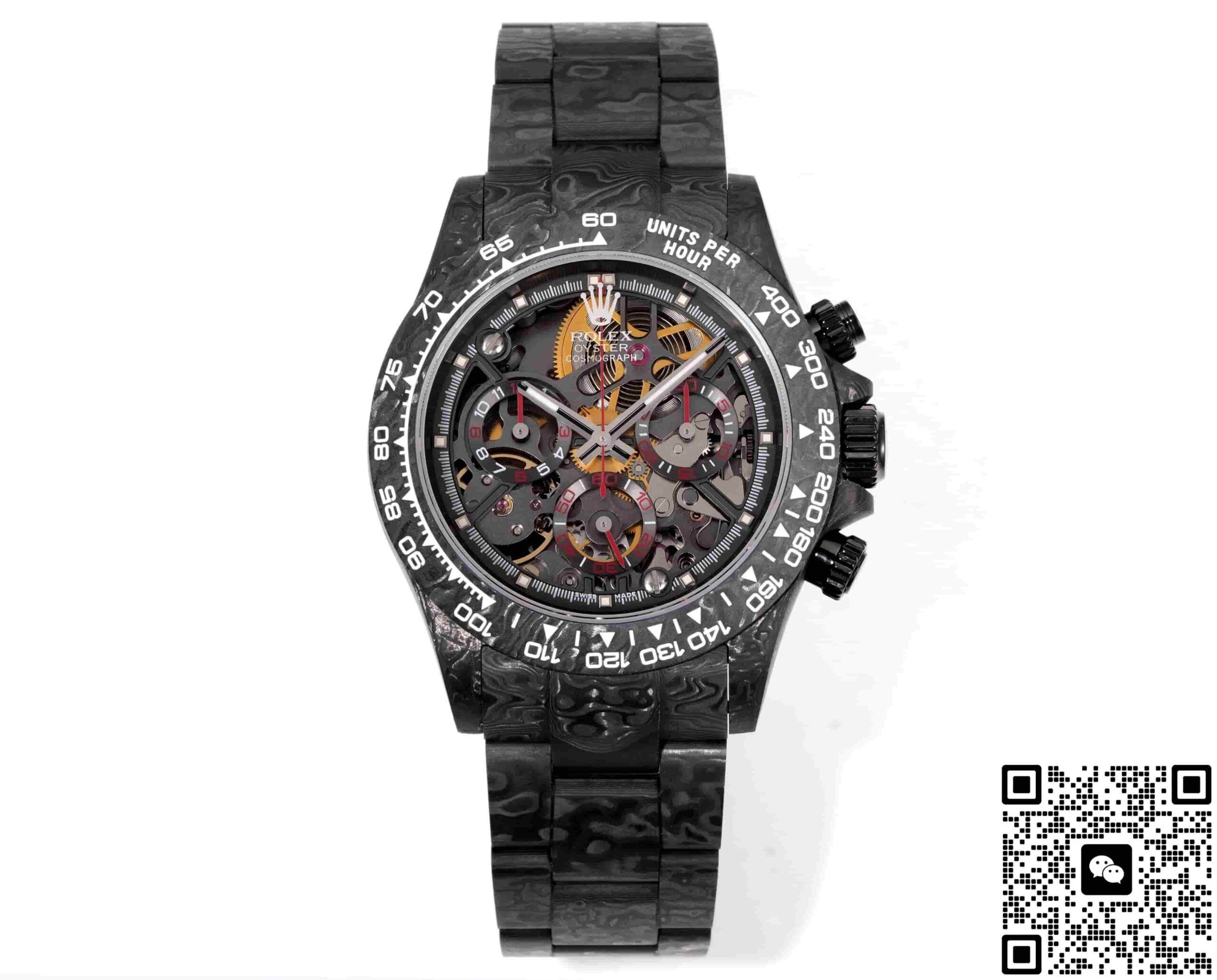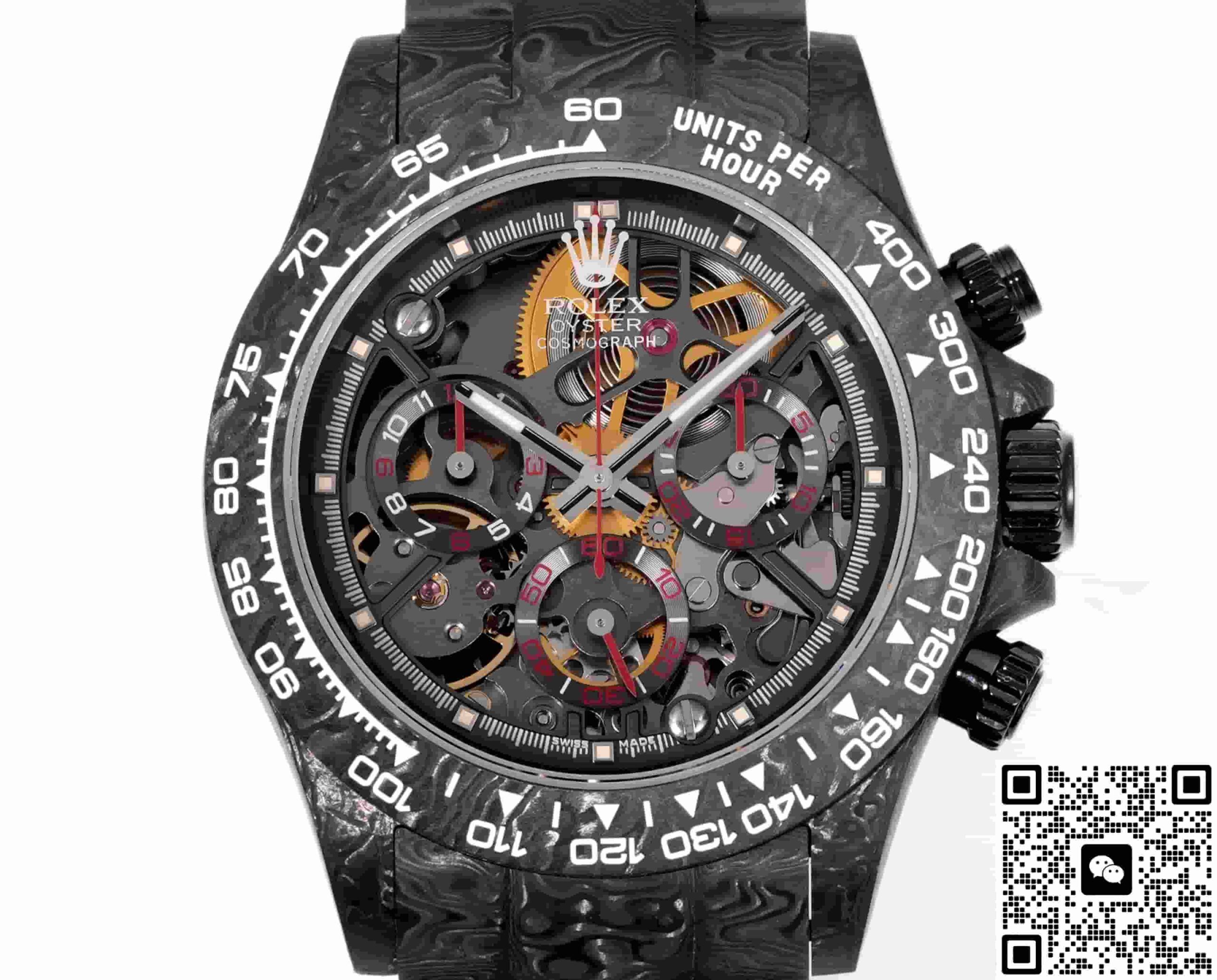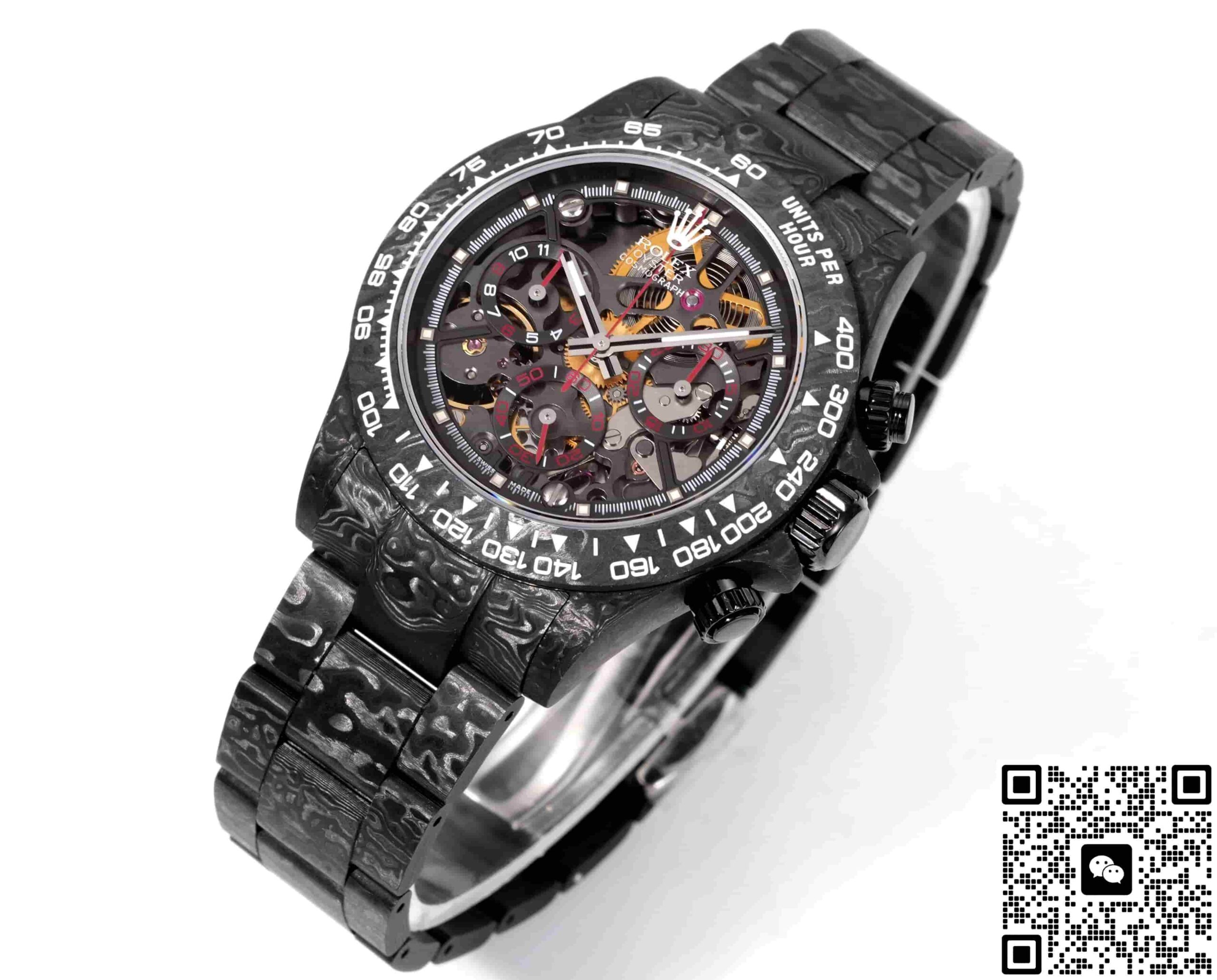 TW Factory Rolex Daytona Carbon Fiber Replica watch For Sale, it is a watch made by replicating the various parts of the genuine watch according to 1:1 mold opening, that is, a replica watch. Its design, materials, and workmanship will strictly imitate the authentic manufacturing. This kind of watch has many advantages such as high simulation degree, fine workmanship and stable performance. Most replica watches can also achieve all the functions of the original watch, which is why many replica watches can be exported overseas. If you are looking to buy a high imitation watch, then this TW Factory Replica Rolex Daytona Skeleton Dial is a very good choice.