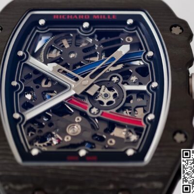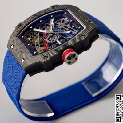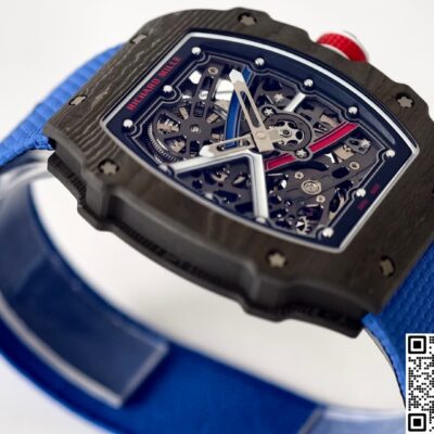 Today let’s talk about this UMI factory Richard Mille RM67-02 French Black replica watch. First impression when you get it in hand — it’s super light. The case is made of carbon fiber, which is much lighter than metal materials. Even if you wear it for a long time, your wrist won’t feel any pressure.