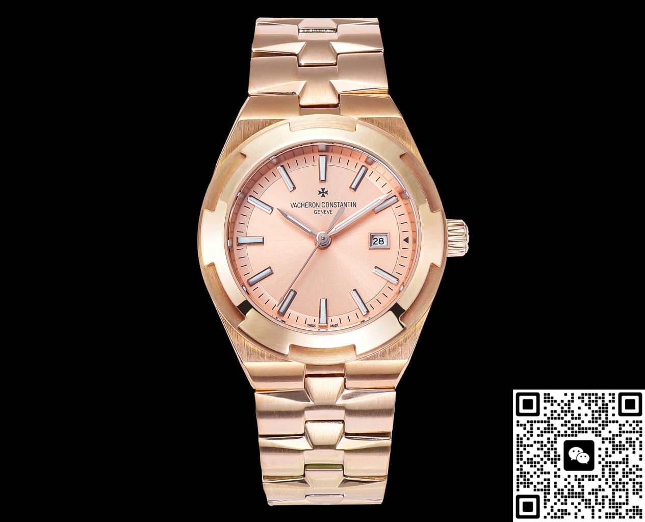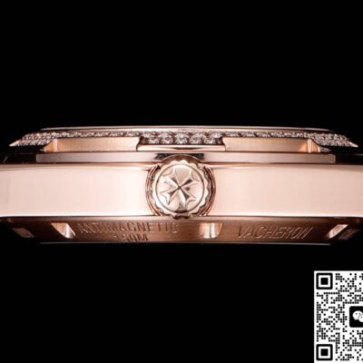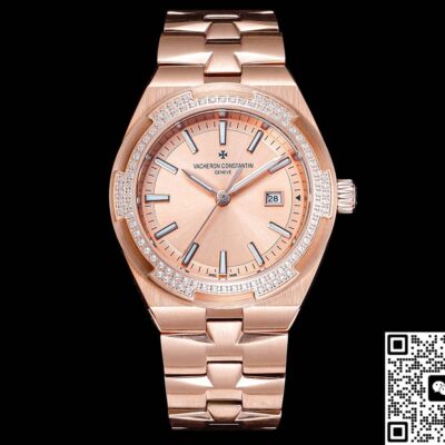 Take the phrase “Overseas” – it hints at the vast, the free, and the unknown. From the start, it carries a suggestion of being ready to set off anytime. The VC Factory Vacheron Constantin Overseas 4605V-200R-B968 replica captures this feeling in its design. With a case size of 33mm, it’s in the sweet spot for ladies’ replica watches. It packs elements like a rose gold tone, diamond-set bezel, and integrated bracelet – usually found in high-end jewelry watches – into a compact case. The size is modest, but it makes a strong statement with two key details: shine and thinness.