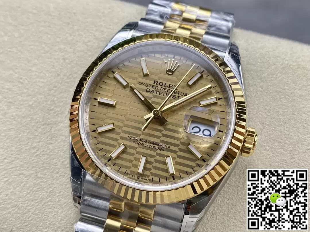 What is a replica watch? To put it simply, it is a watch made by replicating the various parts of the genuine watch according to 1:1 mold opening, that is, a replica watch. Its design, materials, and workmanship will strictly imitate the authentic manufacturing. This kind of watch has many advantages such as high simulation degree, fine workmanship and stable performance. Most replica watches can also achieve all the functions of the original watch, which is why many replica watches can be exported overseas. If you are looking to buy a high imitation watch, then this VS Factory Rolex Datejust M126233-0039 36MM Yellow Gold Dial is a very good choice.