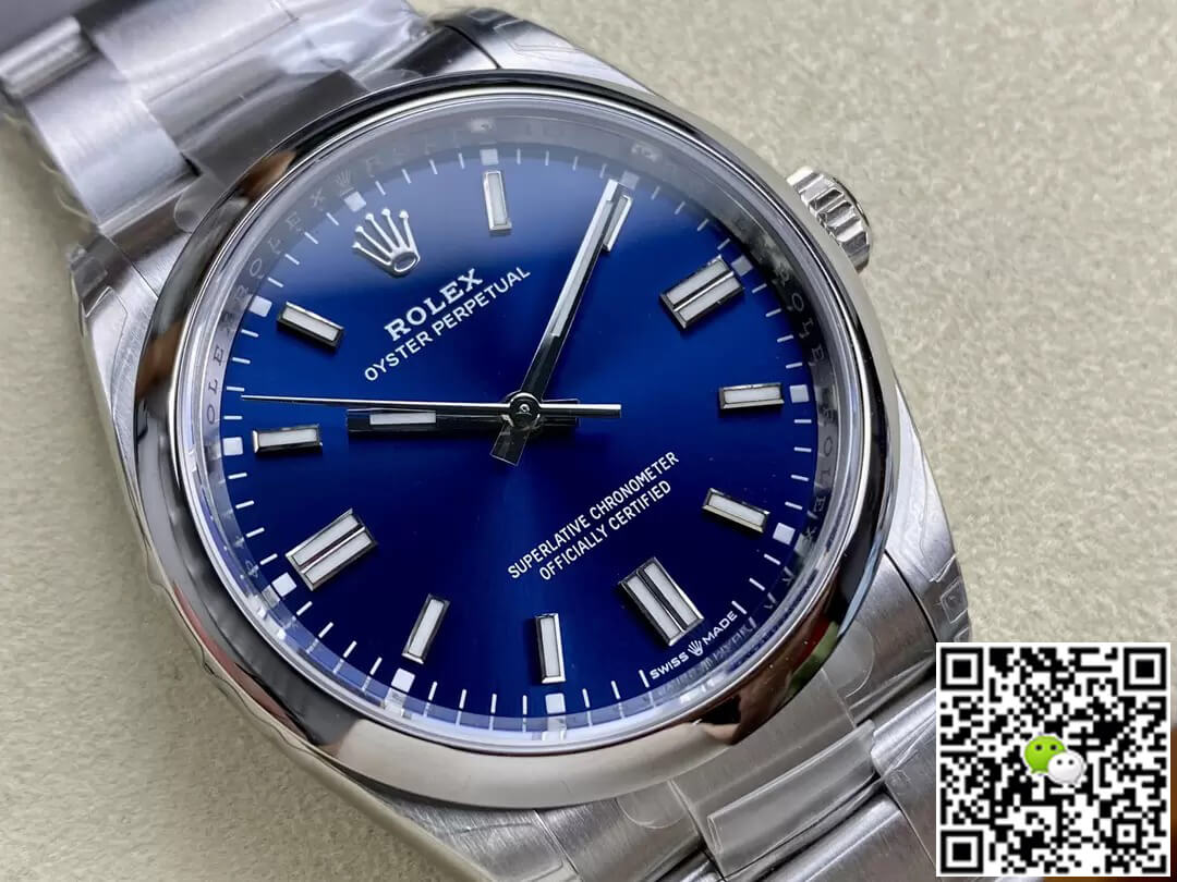 What is a replica watch? To put it simply, it is a watch made by replicating the various parts of the genuine watch according to 1:1 mold opening, that is, a replica watch. Its design, materials, and workmanship will strictly imitate the authentic manufacturing. This kind of watch has many advantages such as high simulation degree, fine workmanship and stable performance. Most replica watches can also achieve all the functions of the original watch, which is why many replica watches can be exported overseas. If you are looking to buy a high imitation watch, then this VS Factory Rolex Oyster Perpetual M126000-0003 36MM Blue Dial is a very good choice.