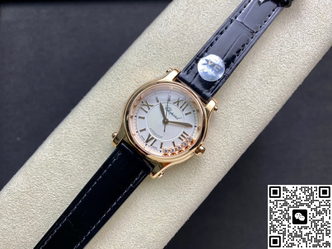 YF Factory Chopard Happy Diamonds 274893-5001 Rose Gold Case Replica watch For Sale, it is a watch made by replicating the various parts of the genuine watch according to 1:1 mold opening, that is, a replica watch. Its design, materials, and workmanship will strictly imitate the authentic manufacturing. This kind of watch has many advantages such as high simulation degree, fine workmanship and stable performance. Most replica watches can also achieve all the functions of the original watch, which is why many replica watches can be exported overseas. If you are looking to buy a high imitation watch, then this YF Factory Replica Chopard Happy Diamonds 274893-5001 Rose Gold Case is a very good choice.