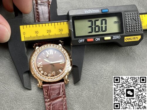 YF Factory Chopard HAPPY DIAMONDS 277473-5008 Brown Strap Replica watch For Sale, it is a watch made by replicating the various parts of the genuine watch according to 1:1 mold opening, that is, a replica watch. Its design, materials, and workmanship will strictly imitate the authentic manufacturing. This kind of watch has many advantages such as high simulation degree, fine workmanship and stable performance. Most replica watches can also achieve all the functions of the original watch, which is why many replica watches can be exported overseas. If you are looking to buy a high imitation watch, then this YF Factory Replica Chopard HAPPY DIAMONDS 277473-5008 Brown Strap is a very good choice.