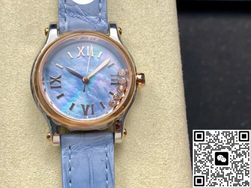 YF Factory Chopard Happy Diamonds 278608-6013 Light Blue Dial Replica watch For Sale, it is a watch made by replicating the various parts of the genuine watch according to 1:1 mold opening, that is, a replica watch. Its design, materials, and workmanship will strictly imitate the authentic manufacturing. This kind of watch has many advantages such as high simulation degree, fine workmanship and stable performance. Most replica watches can also achieve all the functions of the original watch, which is why many replica watches can be exported overseas. If you are looking to buy a high imitation watch, then this YF Factory Replica Chopard Happy Diamonds 278608-6013 Light Blue Dial is a very good choice.