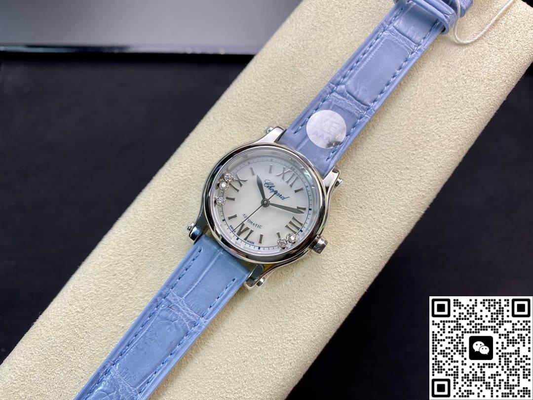 YF Factory Chopard Happy Sport Blue Strap Replica watch For Sale, it is a watch made by replicating the various parts of the genuine watch according to 1:1 mold opening, that is, a replica watch. Its design, materials, and workmanship will strictly imitate the authentic manufacturing. This kind of watch has many advantages such as high simulation degree, fine workmanship and stable performance. Most replica watches can also achieve all the functions of the original watch, which is why many replica watches can be exported overseas. If you are looking to buy a high imitation watch, then this YF Factory Replica Chopard Happy Sport Blue Strap is a very good choice.