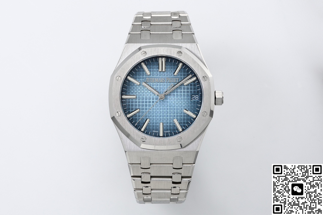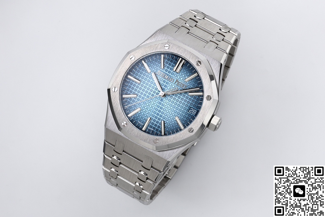 ZF Factory Audemars Piguet Royal Oak 15510BC.OO.1320BC.02 Smoky Blue Dial Replica watch For Sale, it is a watch made by replicating the various parts of the genuine watch according to 1:1 mold opening, that is, a replica watch. Its design, materials, and workmanship will strictly imitate the authentic manufacturing. This kind of watch has many advantages such as high simulation degree, fine workmanship and stable performance. Most replica watches can also achieve all the functions of the original watch, which is why many replica watches can be exported overseas. If you are looking to buy a high imitation watch, then this ZF Factory Replica Audemars Piguet Royal Oak 15510BC.OO.1320BC.02 Smoky Blue Dial is a very good choice.