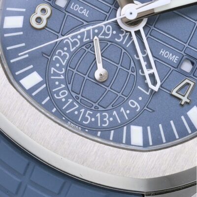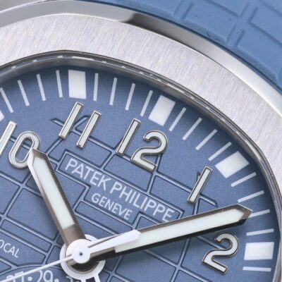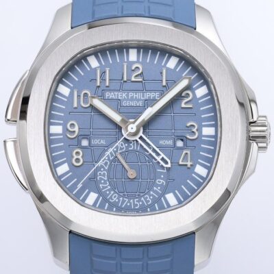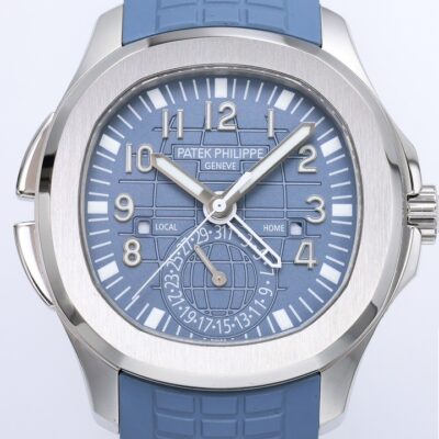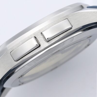 I have to say, the gray-blue color on this AF factory Patek Philippe replica watch is really beautiful. It’s almost no different from the original. The mix of neutral gray and cool blue creates a tone that’s both calming and restrained—elegant and not tacky at all. That’s what caught my eye the first time. The embossed patterns on the dial are similar to those on the dial itself, adding a touch of refinement to the whole watch. The case looks just like the original’s 18k white gold finish—very shiny and high-end. The dual time zone function is a nice surprise; you can check the time in different regions. The date window is designed in a circular shape with classic embossed patterns, kind of like the shape of the Earth. It’s both practical and good-looking. The design of this watch really matches my taste.