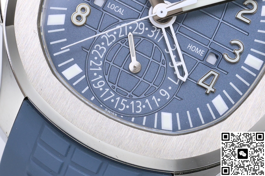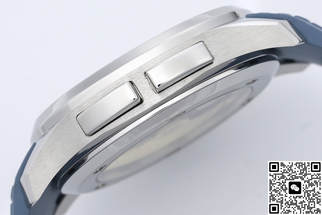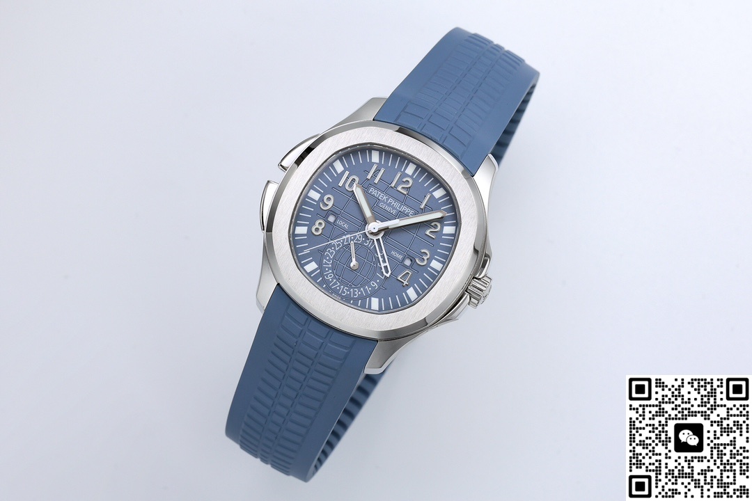 I have to say, the gray-blue color on this AF factory Patek Philippe replica watch is really beautiful. It’s almost no different from the original. The mix of neutral gray and cool blue creates a tone that’s both calming and restrained—elegant and not tacky at all. That’s what caught my eye the first time. The embossed patterns on the dial are similar to those on the dial itself, adding a touch of refinement to the whole watch. The case looks just like the original’s 18k white gold finish—very shiny and high-end. The dual time zone function is a nice surprise; you can check the time in different regions. The date window is designed in a circular shape with classic embossed patterns, kind of like the shape of the Earth. It’s both practical and good-looking. The design of this watch really matches my taste.