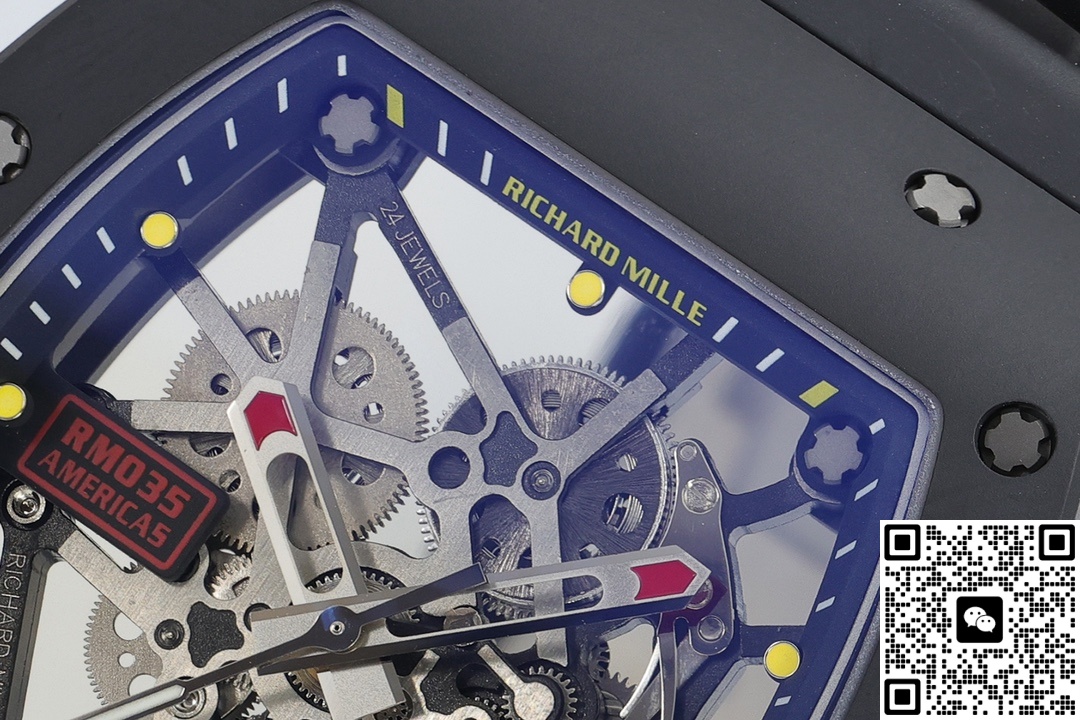 ZF Factory Richard Mille RM035 Grade 5 Titanium Replica watch For Sale, it is a watch made by replicating the various parts of the genuine watch according to 1:1 mold opening, that is, a replica watch. Its design, materials, and workmanship will strictly imitate the authentic manufacturing. This kind of watch has many advantages such as high simulation degree, fine workmanship and stable performance. Most replica watches can also achieve all the functions of the original watch, which is why many replica watches can be exported overseas. If you are looking to buy a high imitation watch, then this ZF Factory Replica Richard Mille RM035 Grade 5 Titanium is a very good choice.