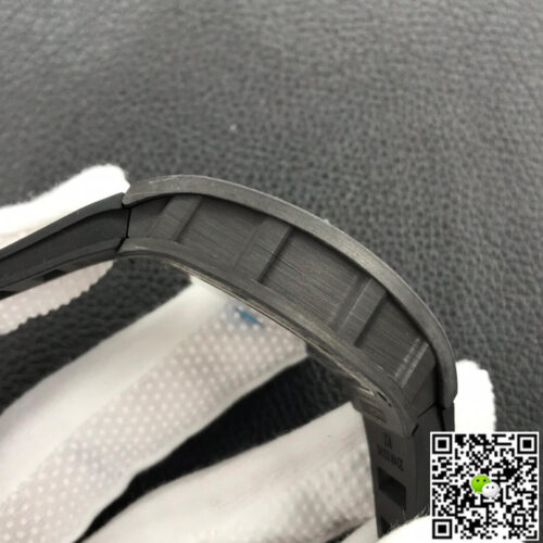 - Replica Richard Mille RM67-01 automatic winding watch has delicate size and wine barrel shape case, and not only has the best classic modelling, but also is slim and moderate. The numeral time markers especially made of solid metal, contrast with exquisite hollowing movement to set off the watch being deep and complex. The Richard Mille RM67-01 watch is slim, simple and light, deep, complex and overlap, that is become the perfect choice which can compare to genuine.The size of the case is 38.7 mm x 47.5 mm , and the thickness is 13mm. The Richard MIlle RM67-01 adopt superior rubber strap which is superstrong waterproof and anticorrosion, and this kind of strap is a necessary strap for you to wear in summer.