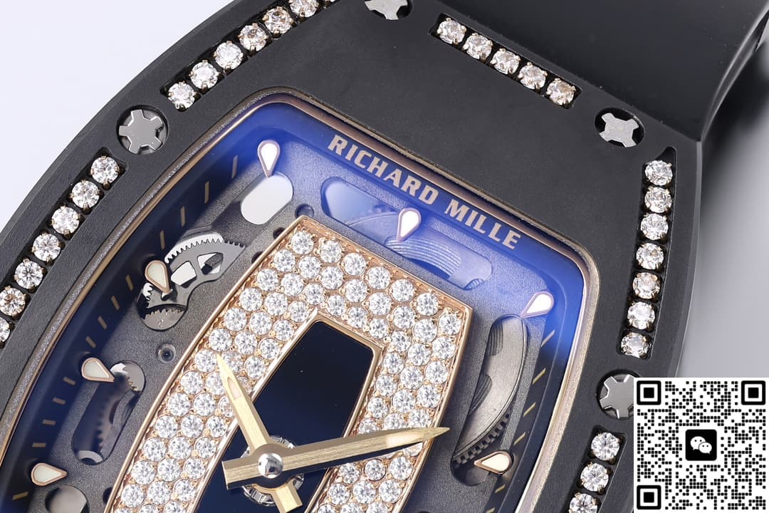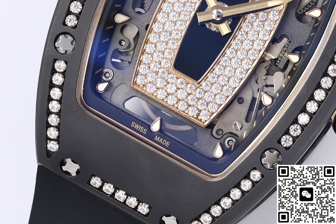 ZF factory got the replication level to over 90%. If you just want to spend once to experience high-end skeletonization, a ceramic case, and a diamond-set bezel—without putting in too much effort later—then putting your budget toward this ZF factory Richard Mille RM07-01 replica watch is a pretty safe bet. For girls wanting to go for a mechanical style, it’s also the most hassle-free choice.
