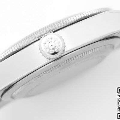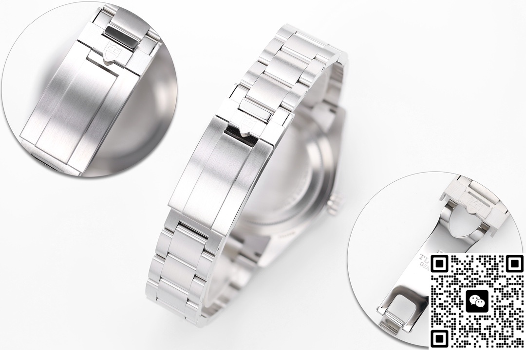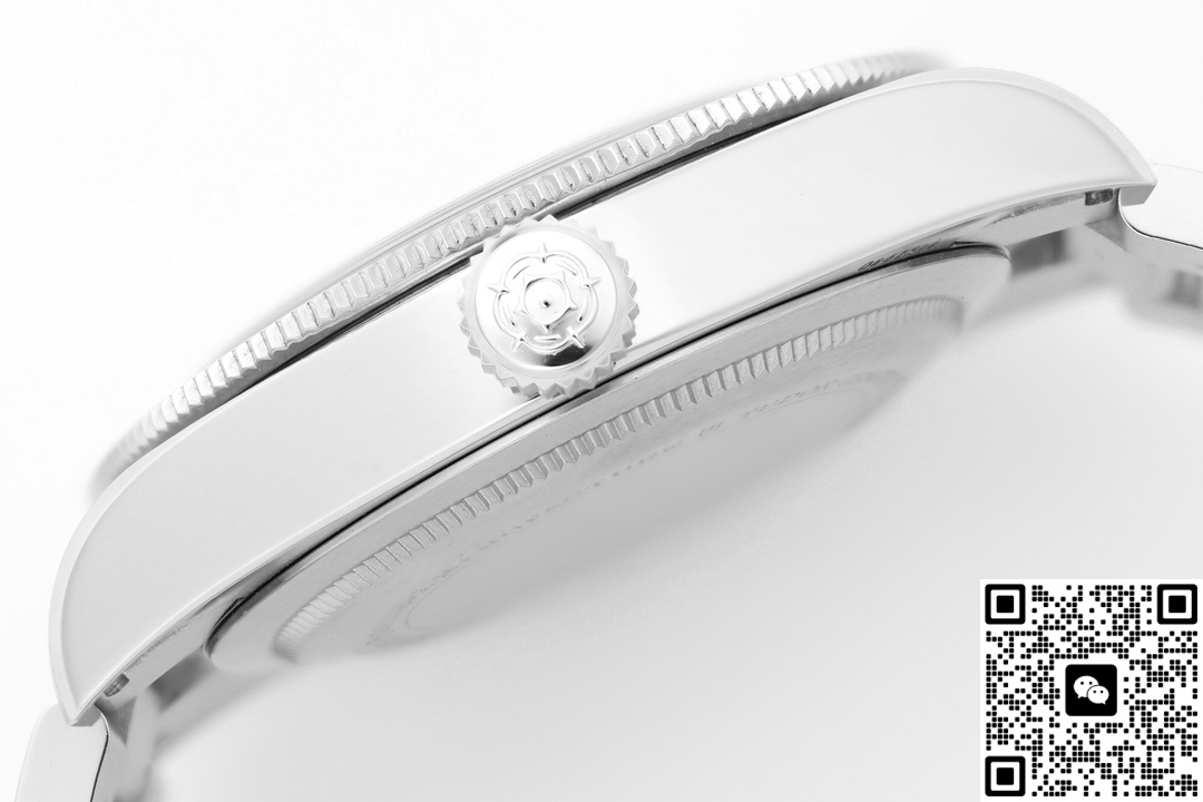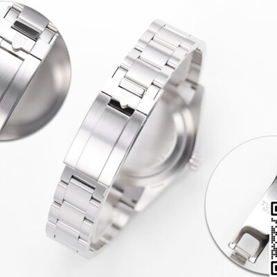 But the most charming detail has to be the rose logo engraved on the screw-down crown. The grooves between petals and leaves are re-engraved with a five-axis laser, then polished and rhodium-plated. Even under close-up photos, it holds up well. The crown guards are widened and beveled at the edges, protecting the crown without digging into your hand. The bracelet uses a three-link design, polished in the middle and brushed on the sides. The clasp has a built-in T-fit quick-adjust system. Without any tools, you can expand or contract it in 8mm across five positions. When your wrist swells in the summer, just loosen it one click—comfort level goes way up.